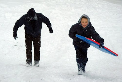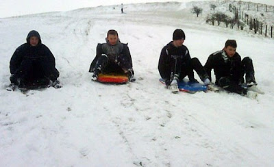 The snow arrived in England today with six inches falling in and around Basingstoke, the snow made my route to work impassable, however, funnily enough, I found the route to Beacon Hill passable. I took George, Harry, and friends Ben and Alex sledging, not wise with a knackered knee. I will let the pictures do the talking rather than me for a change. The videos are of us all.