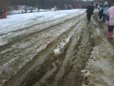 The temperature gradgually lifted today giving a slow thaw accompanied by heavy rain which started the flood process. The sheer amount of snow melting has turned roads in to rivers and fields in tp quagmires. Don’t read in to this wrong, there is still no heatwave on the horizon with temps down to -4 or 5c at nigh all this week and only rising to what now seems a balmy 5c by day.