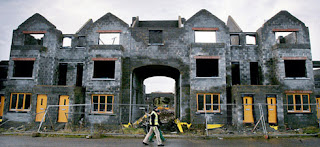 I have picked up all this information of the Internet, it is everywhere, so all of what is written above is taken from facts and figures from various financial web pages, it is not me trying to be clever as I am no economist. What is obvious to anyone though, is that bailing out the Irish will mean (for the UK) more cuts, more job losses, and higher taxes. It could be worse you could be Irish, many of their people who were duped in to 100% mortgages on the back of the “Celtic Tiger” have seen 60% wiped of the value of their properties, and even worse some are living on ‘ghost estates’ that have never been finished, have sewage problems, no street lighting, unfinished playgrounds, and unprotected half built houses for their children to play in.