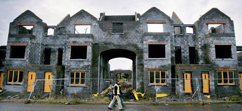 I have picked up all this information of the Internet, it is everywhere, so all of what is written above is taken from facts and figures from various financial web pages, it is not me trying to be clever as I am no economist. What is obvious to anyone though, is that bailing out the Irish will mean (for the UK) more cuts, more job losses, and higher taxes. It could be worse you could be Irish, many of their people who were duped in to 100% mortgages on the back of the “Celtic Tiger” have seen 60% wiped of the value of their properties, and even worse some are living on ‘ghost estates’ that have never been finished, have sewage problems, no street lighting, unfinished playgrounds, and unprotected half built houses for their children to play in.